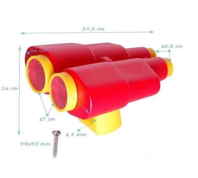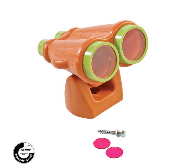 Naj domišljija vašega otroka raziskuje bližnjo okolico igral z našim igralnim daljnogledom! Daljnogled je zabaven pripomoček za vsako igralo. Enostavno se namesti na leseno ograjo in je v trenutku pripravljen za raziskovanje.
