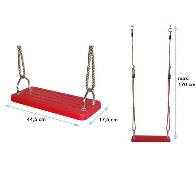 Gugalni sedež v obliki deske iz trde gume z ALU vložkom je zelo podoben tistim, ki jih vidimo na javnih igriščih in parkih.