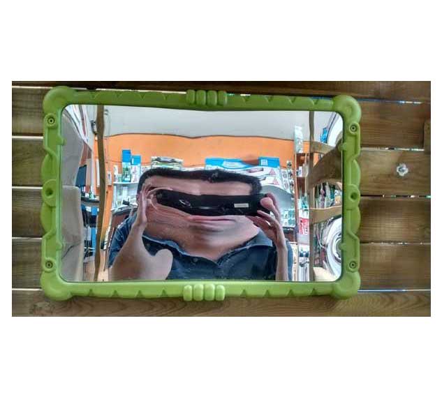 Slika v ogledalu je popačena zaradi ukrivljenih površin, zaradi česar se bodo obrazi otrok pojavljali na zabaven način.