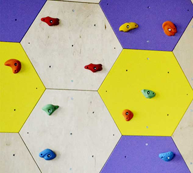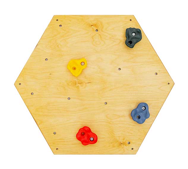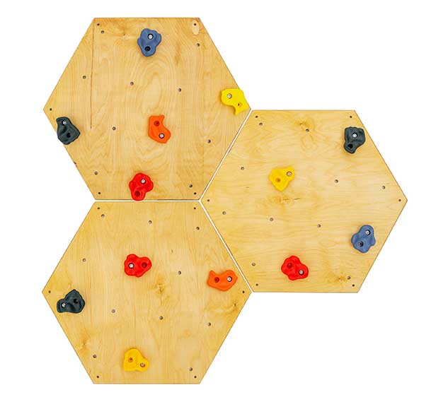 Super zabaven vzpon! Šesterokoti ustvarijo čudovit učinek satja. Prilegajo se kateremu koli prostoru, ki ga imate. Vsak kos ima prostor za 7 različnih razporeditev oprimkov, tako da je težavnostno stopnjo mogoče prilagoditi sposobnostim in željam uporabnika.