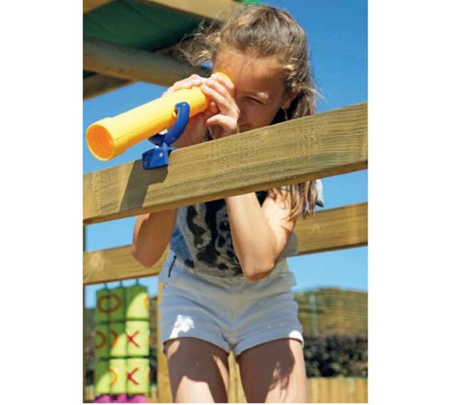 Naj domišljija vašega otroka raziskuje vesolje z našim igralnim teleskopom! Ta igrača teleskop za otroke je zabaven pripomoček za vsako igralo. Enostavno se namesti na leseno ograjo in je v trenutku pripravljen za raziskovanje.