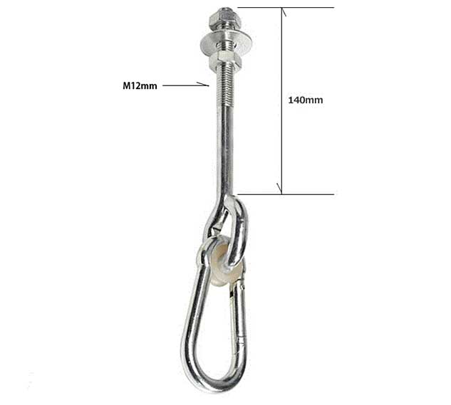 Vijak za gugalnico je dolg 260 mm. Kavelj za gugalnico se lahko uporablja na okroglih ali kvadratnih nosilnih drogovih do 140 mm. Izdelan iz pocinkanega jekla je izjemno trpežen.